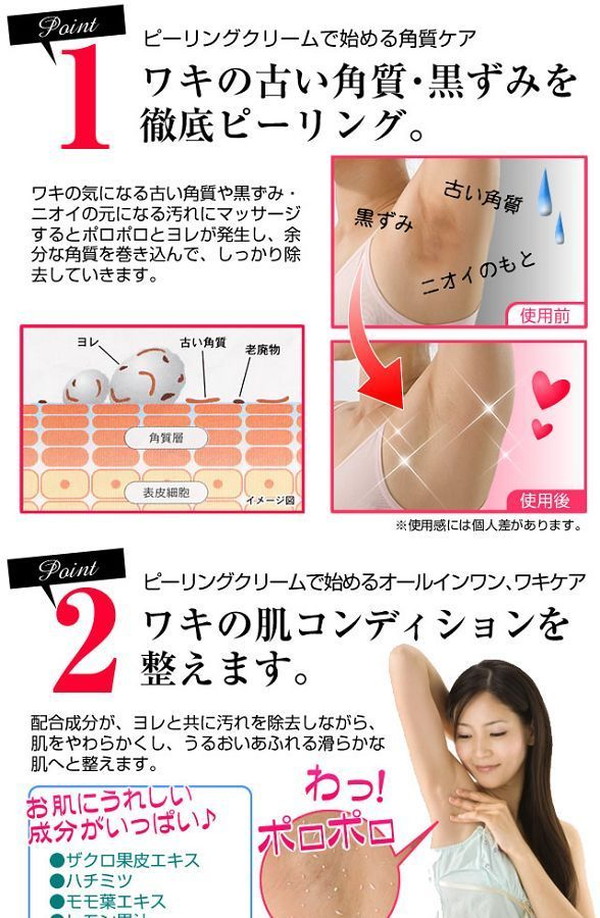 使用方法 適量を塗布し、指先でこすってください。角質がポロポロと取れます。